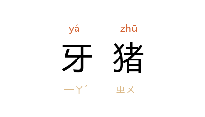 引清 西厓 《谈徵·名部下·牙猪》:“牙猪,牙即豭之转音也。”李育才 《卖肥猪》:“就是五元多钱也不算少啦,能买一头小牙猪。”