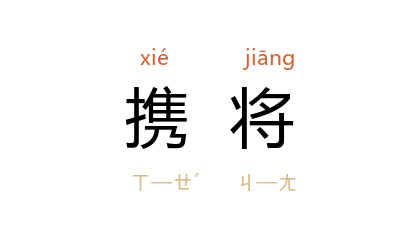 引《后汉书·邓训传》:“黎阳 故人,多携将老幼,乐随 训 徙边。”《三国志·魏志·曹休传》:“休 年十餘岁,丧父,独与一客担丧假葬,携将老母,渡 江 至 吴。”清 顾炎武 《恭谒天寿山十三陵》诗:“村酒与山蔬,一一自携将。”鲁迅 《坟·摩罗诗力说》:“特十餘年来,介绍无已,而究其所携将来归者,乃又捨治饼饵守囹圄之术而外,无他有也。”