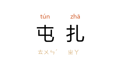 ⒈ 见“屯扎”。亦作“屯紥”。亦作“屯扎”。驻扎。
