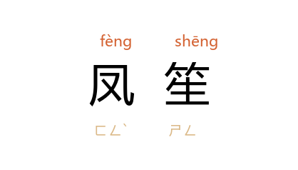 ⒈ 汉应劭《风俗通·声音·笙》:“《世本》:'随作笙。'长四寸、十二簧、像凤之身,正月之音也。”后因称笙为“凤笙”。