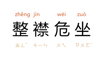 ⒈ 整理服装仪容,端正的坐好。形容态度神情庄重严肃。也作「正襟危坐」。