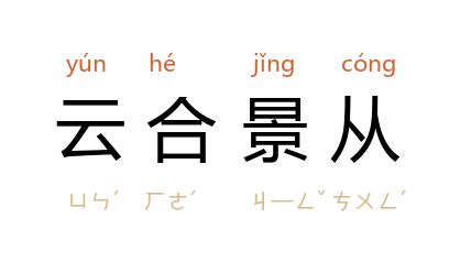 明 张煌言 《上行在陈南北机宜疏》:“﹝皇上﹞将见忠臣义士,必且云合景从矣。”