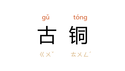 ⒈ 古代铜铸的器皿。色彩黝褐斑斓,世人称其质为「古铜」。