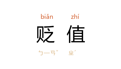 ⒉ 货币的购买力下降,现也泛指事物的价值降低,与“升值”相对。