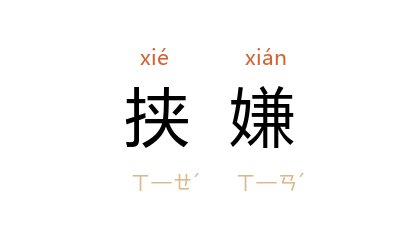 引鲁迅 《集外集拾遣补编·文摊秘诀十条》:“倘有人作文攻击,可说明此人曾来投稿,不予登载,所以挟嫌报复。”洪深 《冯大少爷》:“生之旧御,以生购新车与 金六保 哄,致失生欢,遂挟嫌向 陈 发外室事,婢僕復从傍怂恿。”