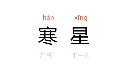 引唐 孟郊 《石淙》诗:“百尺明镜流,千曲寒星飞。”唐 陆龟蒙 《华阳巾》诗:“须是古坛秋霽后,静焚香炷礼寒星。”《老残游记》第二回:“那双眼睛,如秋水,如寒星。”郭小川 《茫茫大海中的一个小岛》诗:“连那几朵野花哟,都似寒星一般地抖。”