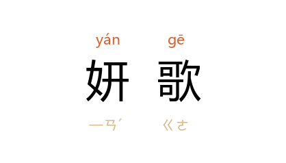 引《文选·颜延之<三月三日曲水诗序>》:“妍歌妙舞之容,衔组树羽之器。”李善 注:“《古妍歌篇》曰:‘妍歌展妙声,发曲吐令辞。’”宋 柳永 《合欢带》词:“妍歌艷舞,鶯惭巧舌,柳妒纤腰。”