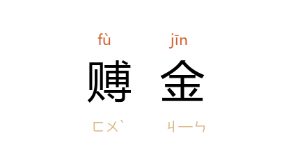 引宋 朱熹 《朝奉大夫傅公行状》:“既而太夫人竟不起,郡县賻金千餘緡。”《古今小说·沉小霞相会出师表》:“此时京中官员,无不追念 沉青霞 忠义,怜 小霞 母子扶柩远归,也有送勘合的,也有赠賻金的。”