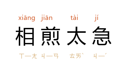 ⒈ 本指兄弟阋墙,相逼过甚。语本三国魏·曹植便为诗:「煮豆持作羹,漉菽以为汁,萁在釜下然,豆在釜中泣,本自同根生,相煎何太急。」后比喻彼此地位相等,关系密切。也作「相煎何急」。