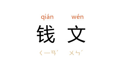 ⒈ 钱面上有文字,故称钱币为「钱文」。后多用为计算金钱的单位,如「钱若干文」。