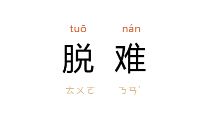 引《西游记·第二二回》:「唐僧师徒三众,脱难前来。」《初刻拍案惊奇·卷二四》:「女儿拒奸呼佛,方得观音灵感,带絜众人脱难。」