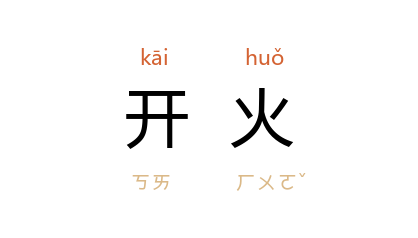 ⒈ 枪炮开始射击。指双方开始争斗。也作「开战@@@开仗」。
