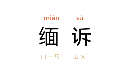 引清 蒲松龄 《聊斋志异·张诚》:“村中有巫走无常者, 訥 途遇之,缅诉曩苦。因询弟所,巫言不闻。”清 蒲松龄 《聊斋志异·席方平》:“席 寃愤正无所出,且意必是巨官,或当能作威福,因缅诉毒痛。”