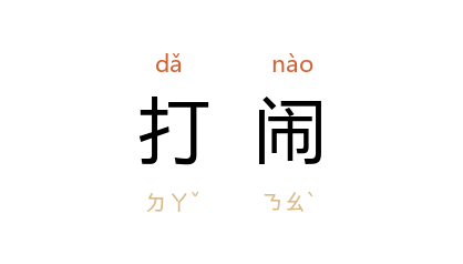 引元·无名氏《符金锭·第三折》:「恰才这韩松就我手中抢了绣球儿去了。某欲待就楼下打闹起来,恐防惊諕了小姐也。」