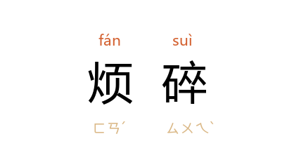 引《汉书·薛宣传》:“吏多苛政,政教烦碎。”唐 刘知几 《史通·题目》:“药草经方,烦碎之至,孰过於此?”《明史·奸臣传·陈瑛》:“奏牘一字之误皆喋喋,烦碎甚矣。”叶圣陶 《在民间》:“烦碎的说话声和嘻笑声连续不息,有如晴朝檐前的群雀。”