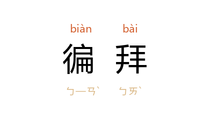 引《左传·襄公二十三年》:“盈 出,徧拜之。”杜预 注:“谢众之忠己。”唐 韩愈 《顺宗实录四》:“遂徧拜 城 与 仲舒 等曰:‘诸諫议能如此言事,天下安得不太平也!’”《资治通鉴·唐肃宗宝应元年》:“徧拜 位 等曰:‘ 神功 出于行伍,不知礼仪,诸君亦胡为不言,成 神功 之过乎!’”