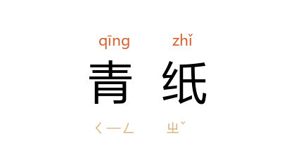⒈ 青色纸张。古代图籍用之。