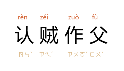 亦作“认贼为父”。 苏曼殊 《遯迹记》:“先是余家既亡,悵悵无之。大盗更迫我儕,为供奔走。测彼居心,是畜猎犬之技。斯时认贼为父,自残 梵 裔者,亦復不少。”