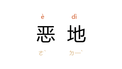引《史记·张耳陈馀列传》:“项羽 为天下宰不平,尽王诸将善地,徙故王王恶地。”《汉书·沟洫志》:“临晋 民愿穿 洛 以溉 重泉 以东万餘顷故恶地。诚即得水,可令亩十石。”《新唐书·刘玄佐传》:“惟清 奔 郑州,彦琳 走 东都 自归,有詔宥死恶地。”