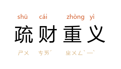 ⒈ 亦作“疎财重义”。轻钱财而重义气。