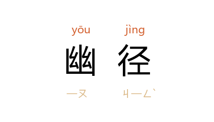 引唐 王绩 《赠李徵君大寿》诗:“灞陵 幽径近, 磻谿 隐路长。”宋 杨万里 《春晴怀故园海棠》诗:“一番过雨来幽逕,无数新禽有喜声。”陈毅 《游柏林失不雷河》诗:“林深树广,幽径纵横。”