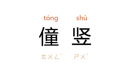 引《晋书·郑默传》:“默 宽冲博爱,谦虚温谨,不以才地矜物,事上以礼,遇下以和,虽僮竖厮养,不加声色。”《南史·虞寄传》:“寄 少篤行,造次必於仁厚,虽僮竖未尝加以声色。”《荀子·大略》“衣则竖褐不完” 唐 杨倞 注:“竖褐,僮竖之褐,亦短褐也。”清 孙枝蔚 《牛饥纪事二十二韵》:“簪饵蓄僮竖,米薪遭侮谩。”