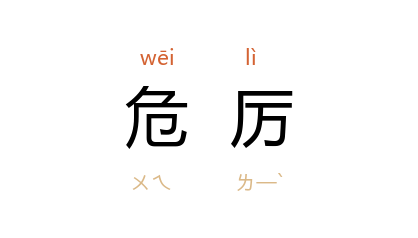 引《易·遯》“係遯,有疾厉” 三国 魏 王弼 注:“繫於所在,不能远害,亦已惫矣,宜其屈辱而危厉也。”唐 柳宗元 《对贺者》:“夫为天子尚书郎,谋无所陈,而羣比以为名,蒙耻遇僇,以待不测之诛。苟人尔,有不汗栗危厉偲偲然哉?”宋 王禹偁 《并诰》:“祗慄危厉,若济巨海,而弗庸舟,惟其溺。”