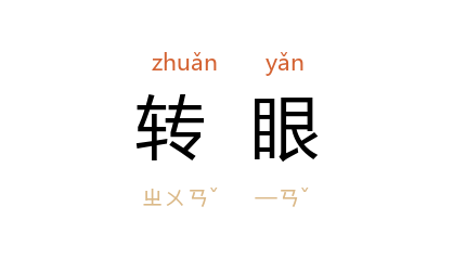 ⒈ 眼睛一转。比喻极短的时间。宋·刘克庄〈祝英台近·雨凄迷〉词:「绿阴绕,青帝结束匆匆,转眼朱明了。」也作「转盼」、「转瞬」。