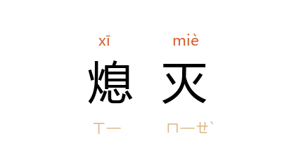 ⒈ 停止燃烧。比喻为停止、灭绝。唐·韩愈〈南海神庙碑〉:「祀之之岁,风灾熄灭。」也作「息灭」。