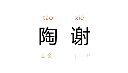 ⒈ 晋末南朝宋初诗人陶潜、谢灵运的并称。陶善写田园诗,谢长于山水诗,两人都擅长于描写自然景物。
