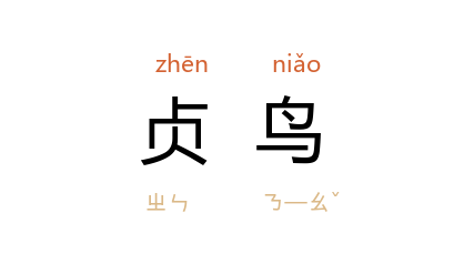 ⒈ 指雎鸠。水鸟名,即鱼鹰。据说雌雄有固定的配偶,古人称为贞鸟。