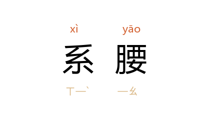 引元 郑廷玉 《忍字记》第二折:“我一隻手将繫腰来採住向前掐。”《元史·顺帝纪六》:“答失八都鲁 克復 襄阳 樊城 有功,陞 四川 行省右丞,赐金繫腰一。”《花城》1981年第5期:“她和衣躺着,皮袄的系腰松开了。”