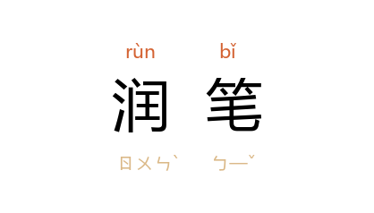 ⒈ 隋文帝命李德林作诏书恢复郑译爵位,高颎乃戏译说:「笔干」,译则回答说:「不得一钱,何以润笔。」典出《隋书·卷三八·郑译传》。后指请人家写文章、作画、写字的酬劳。唐·殷文圭〈贻李南平〉诗:「润笔已曾经奏谢,更飞章句问张华。」也作「润资」。