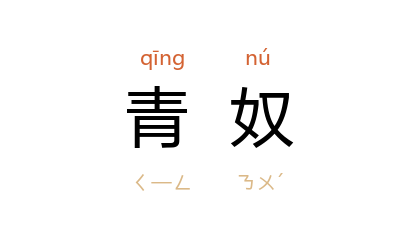 引宋 黄庭坚 《赵子充示竹夫人诗盖凉寝竹器憩臂休膝似非夫人之职予为名曰青奴并以小诗取之》之二:“我无红袖堪娱夜,政要青奴一味凉。”