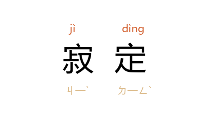 引《百喻经·书末偈语》:“佛正法寂定,明照於世间。”唐 玄奘 《大唐西域记·摩揭陀国上》:“释种 太子今在此中,初证佛果,心凝寂定,四十九日未有所食。”宋 刘攽 《中山诗话》:“无梦 语人:少时絶欲,屏居山中十餘岁,自以为不动。及出,见妇人美色,乃復歉然。又入山十餘年,乃始寂定。”