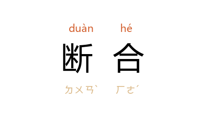 引元 关汉卿 《金线池》第四折:“这法堂上是断合的去处,不是你配合的去处。”《二刻拍案惊奇》卷二:“妙观 无可推辞,只得凭总管断合。”清 袁枚 《新齐谐·治妖易治人难》:“吾今特设一鹊桥在此,能行者断合,否者断离。”