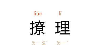 引玄应 《一切经音义》卷十四引 汉 服虔 《通俗文》:“理乱谓之撩理。”南唐 史虚白 《钓矶立谈》:“望其旄纛之所指,举欣欣然相告曰:‘是庶几其撩理我也。’”