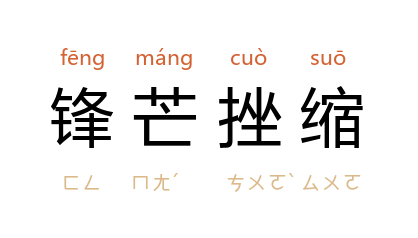 ⒈ 锋芒:刀或剑的尖端,比喻事物的尖锐部分;挫:挫折;缩:后退。指人的锐气才干受挫折而后退。