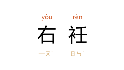 ⒈ 古代中原汉族服装衣襟向右,因以“右衽”谓中夏风习。