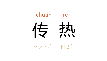⒈  热由温度较高的物体移至温度较低的物体,此作用称为「传热」。分为传导(二物互相接触)​、对流(二物不相接触,热量在介质中传递)​、辐射(热量以电磁波方式发出)​三种方式。