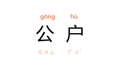⒈ 亦作“公扈”。复姓。 汉 有 公户满意。见《汉书·儒林传·韩婴》。