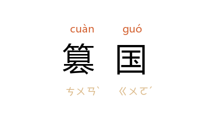 引《后汉书·党锢传序》:“至 王莽 专伪,终於篡国,忠义之流,耻见缨紼,遂乃荣华丘壑,甘足枯槁。”《三国演义》第一百回:“嗟尔无学后辈,上逆穹苍,助篡国之反贼,称帝号於 洛阳。”