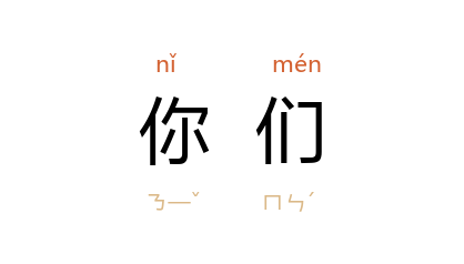⒈ 代词。称不止一个人的对方或包括对方在内的若干人。