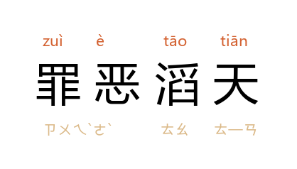 清·洪升《长生殿·第三〇出》:「况且弟兄姊妹,挟势弄权,罪恶滔天,总皆由我,如何忏悔得尽!」