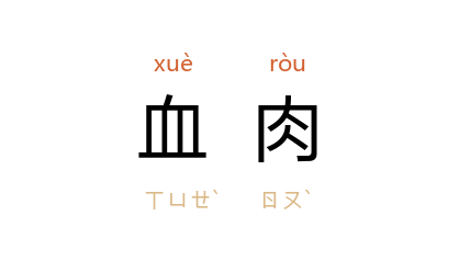 ⒈ 血液和肌肉。指人类躯体。因人体有血与肉,为生命所系,故言。