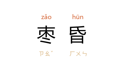 引形容昏聩迟钝。语出《宋书·范晔传》:“枣膏昏钝。”明 陈继儒 《书蕉·枣昏》:“宋 人书启自叙云:‘性本枣昏,质惟木訥。’”