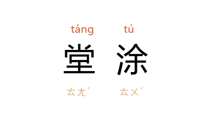 ⒈ 见“堂涂”。亦作“堂涂”。亦作“堂途”。堂下至门的砖路。