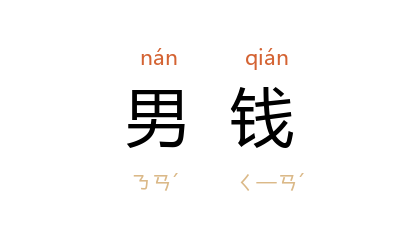 ⒈ 南朝 梁 民间私铸钱币“布泉”的俗称。布泉径一寸,重四铢半,世人谓之“男钱”,传言妇人佩之即生男,故称。见《通典·食货九》。