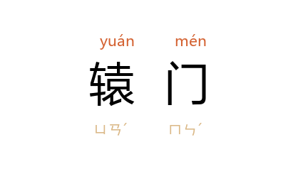 ⒈ 古代君王出巡,驻驾于险阻之地,以车作为屏障,翻仰两车,使两车之辕相向交接成一半圆形的门,称为「辕门」。见《周礼·天官·掌舍》。后指将帅的营门或衙署的外门。