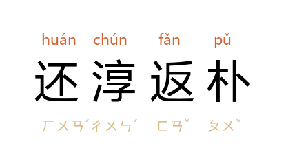 ⒈ 回复到人原来朴实、淳厚的本性。唐·崔融〈则天大圣皇后哀册文〉:「洒以甘露,覆之庆云,制礼作乐,还淳返朴。」也作「还淳反朴」。